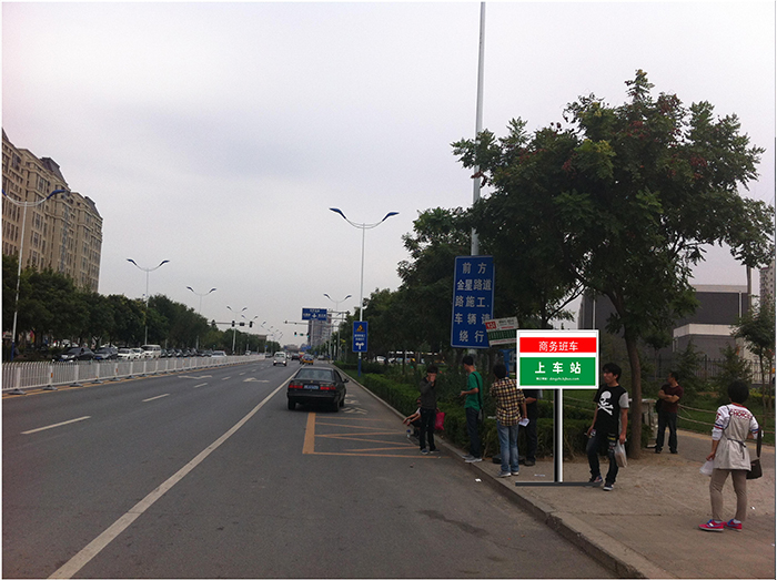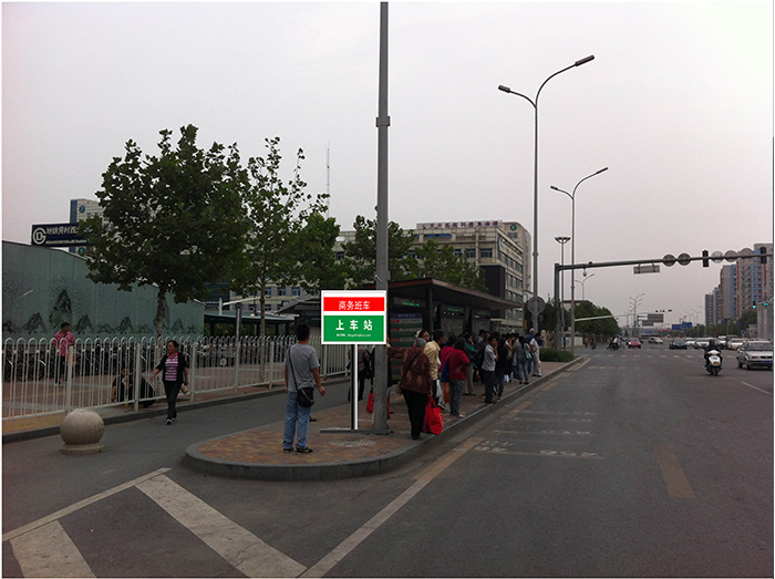 A:商务班车在明显位置设置标识,方便乘客识别和乘坐。请您提前在上车站点候车,上车站点的具体位置详见“班车介绍”,班车将按时到站。