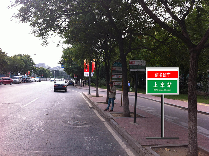 A:商务班车在明显位置设置标识,方便乘客识别和乘坐。请您提前在上车站点候车,上车站点的具体位置详见“班车介绍”,班车将按时到站。