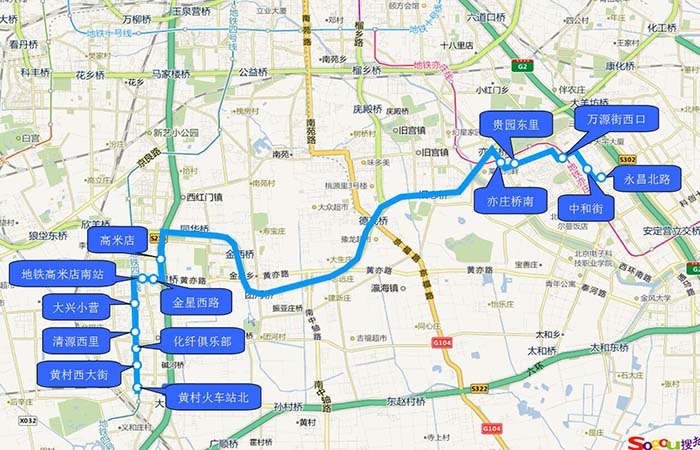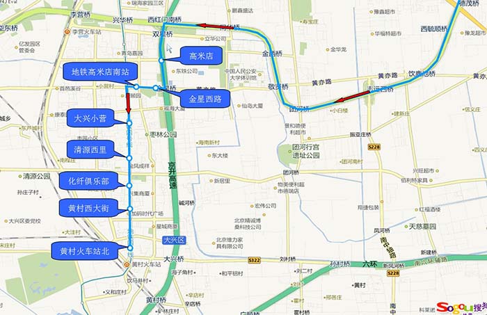 1.高米店 2.地铁高米店南站 3.兴华园 4.清源西里 5.化纤俱乐部 6.黄村西大街 7.黄村火车站北 |