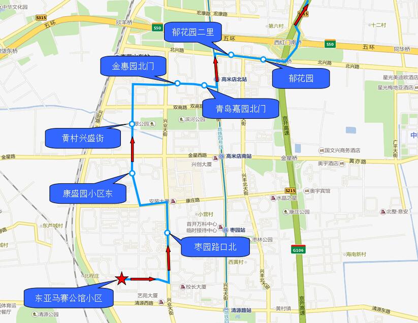 | 2020-6-1 | 7:00 | 90分钟 | 1.东亚马赛公馆小区 2.枣园路口北 3.康盛园小区东 4.黄村兴盛街 5.金惠园北门 6.青岛嘉园北门 7.郁花园二里 8.郁花园一里 |