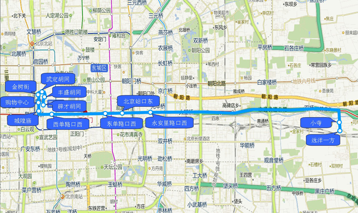 1.永安里路口西 2.北京站口东 3.东单路口西 4.西单路口西 5.城隍庙 6.购物中心 7.金树街 8.武定胡同 9.丰盛胡同 10.辟才胡同 |