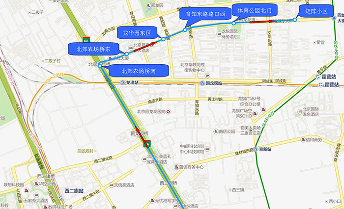 1.北郊农场桥南 2.北郊农场桥东 3.龙华园东区 4.育知东路路口西 5.体育公园北门 6.矩阵小区 |