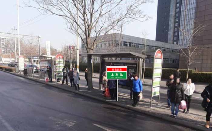A:商务班车在明显位置设置标识,方便乘客识别和乘坐。请您提前在上车站点候车,上车站点的具体位置详见“班车介绍”,班车将按时到站。