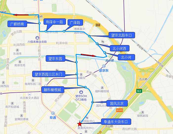 上车站点1:阜通东大街东口(返回上车站点分布示意图)