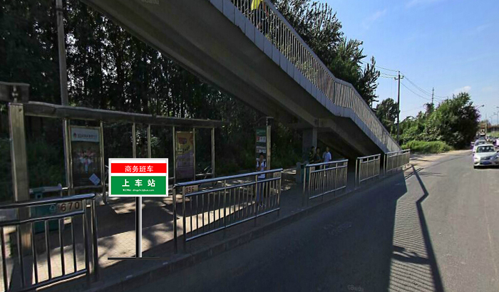 A:商务班车在明显位置设置标识,方便乘客识别和乘坐。请您提前在上车站点候车,上车站点的具体位置详见“班车介绍”,班车将按时到站。