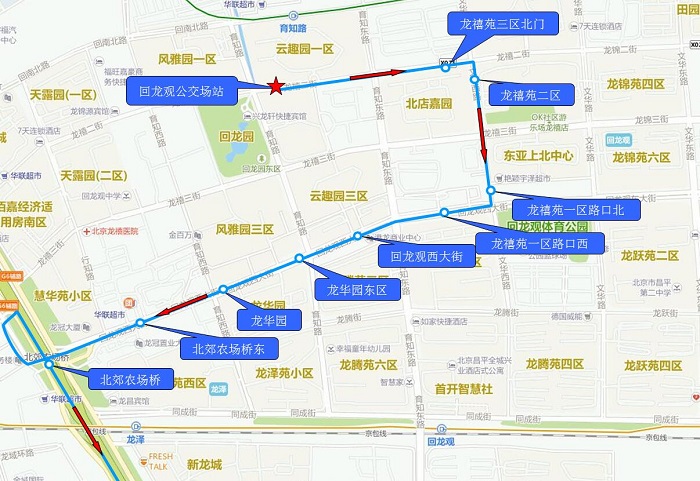 上车站站1:回龙观公交场站(返回上车站点分布示意图)