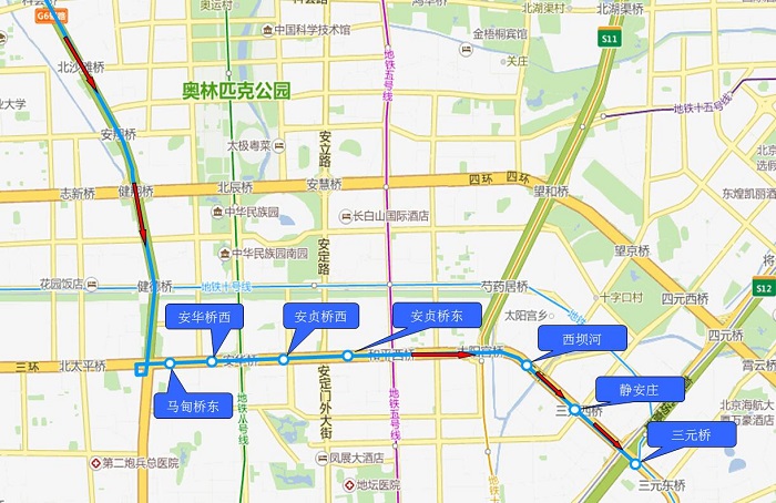 7.三元桥预计走行时间 65分钟 里 程 23公里