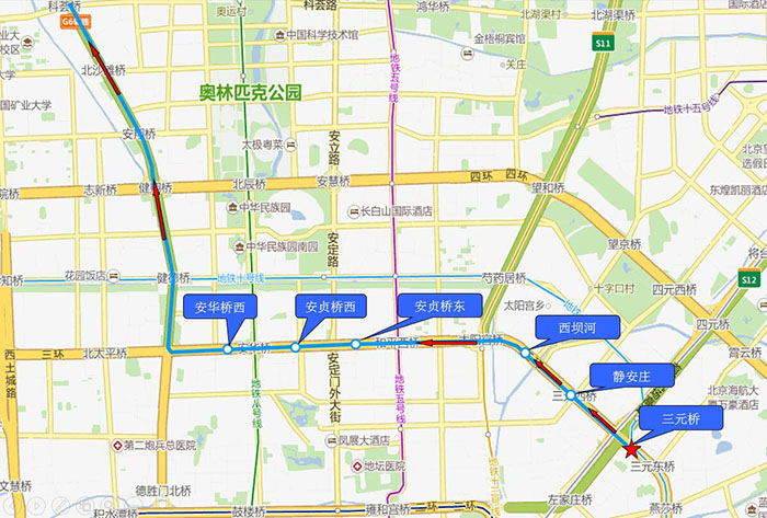 上车站点5:安贞桥西(返回上车站点分布示意图)