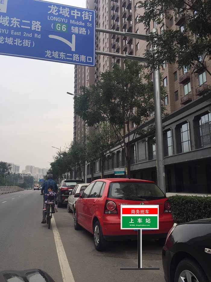 A:商务班车在明显位置设置标识,方便乘客识别和乘坐。请您提前在上车站点候车,上车站点的具体位置详见“班车介绍”,班车将按时到站。