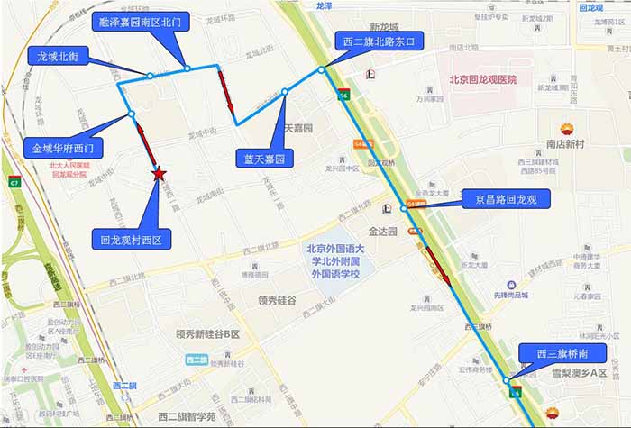 上车站站1:回龙观村西区(返回上车站点分布示意图)