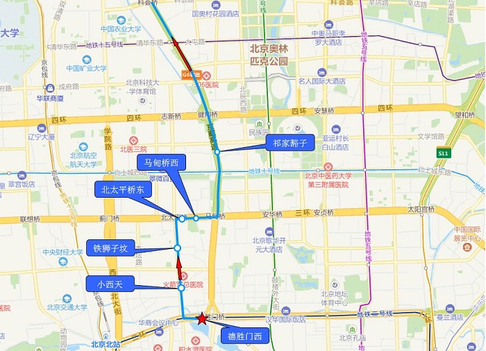 上车站点5:马甸桥西 (返回上车站点分布示意图)