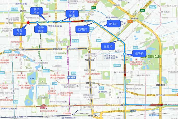 | 待定 | 17:45 | 70分钟 | 1.马甸桥东 2.安华桥西 3.安贞桥西 4.安贞桥东 5.西坝河 6.静安庄 7.三元桥 8.亮马桥 |